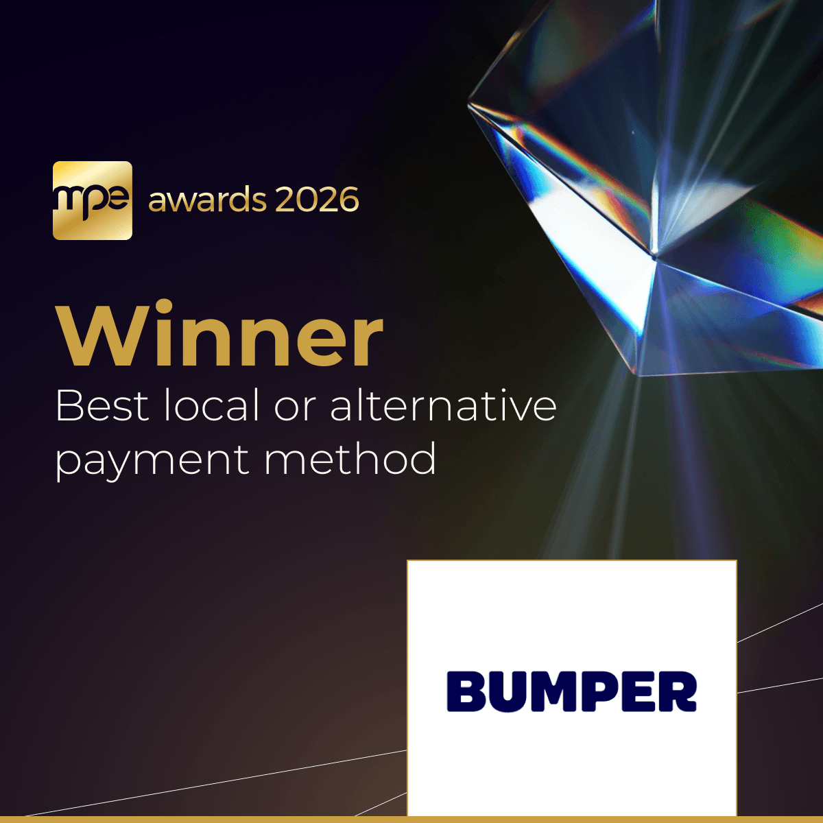 En este contexto, Bumper Iberia ha sido reconocida al ganar el premio “Best Local or Alternative Payment Method” (Mejor método de pago local o alternativo) en los MPE Awards 2026, celebrados en Berlín.